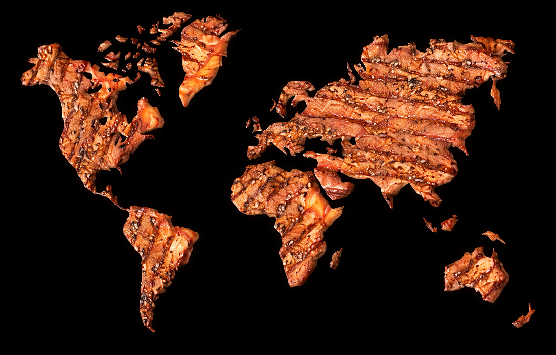 Μια σουρεαλιστική προειδοποιητική εικόνα από το μέλλον του πλανήτη. Ο χάρτης του κόσμου φτιαγμένος από ψημένο κρέας, καθώς η Γη…