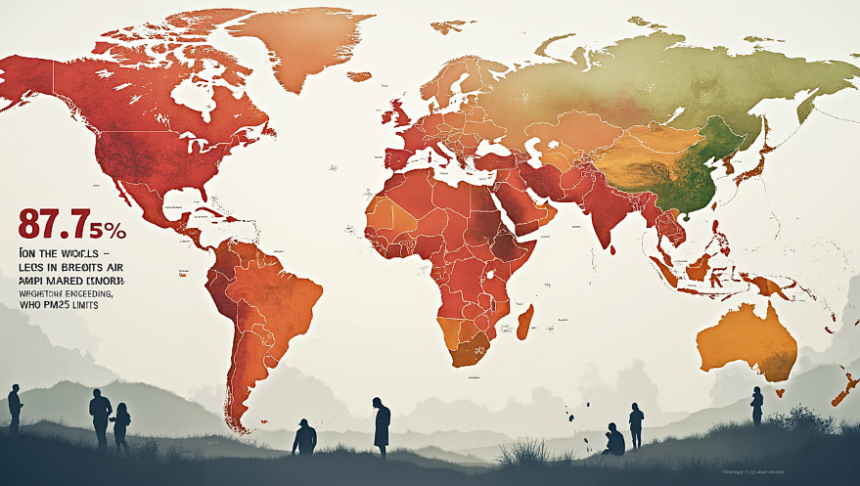 Αυτή τη στιγμή, το 87,5% του παγκόσμιου πληθυσμού (6.580.451.992 άνθρωποι) βιώνει ποιότητα ατμοσφαιρικού αέρα που δεν πληροί την ετήσια οδηγία του Παγκόσμιου Οργανισμού Υγείας για τα PM2.5.