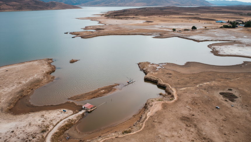 Η δορυφορική ανάλυση της υπηρεσίας Meteo.gr στις 9 Οκτωβρίου επιβεβαιώνει το μέγεθος της κρίσης: η έκταση της λίμνης συρρικνώθηκε στα 8,3 τετραγωνικά χιλιόμετρα, μειωμένη κατά 44% σε σχέση με τη μέση τιμή της περιόδου 2016-2024. Το απόκοσμο τοπίο συμπληρώνεται από την εμφάνιση του βυθισμένου χωριού Κάλλιο, θυμίζοντας τις ξηρασίες της δεκαετίας του ’90.